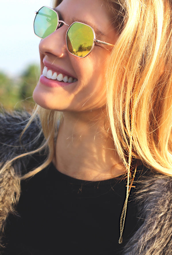 Backlace Size Style 27" (69 cm) Unisex style sunglass chain, popular for men and women's sunglasses. Available in Gold or Silver. Attachments are available in black or clear to match any pair of eyewear. All attachments are adjustable and can...